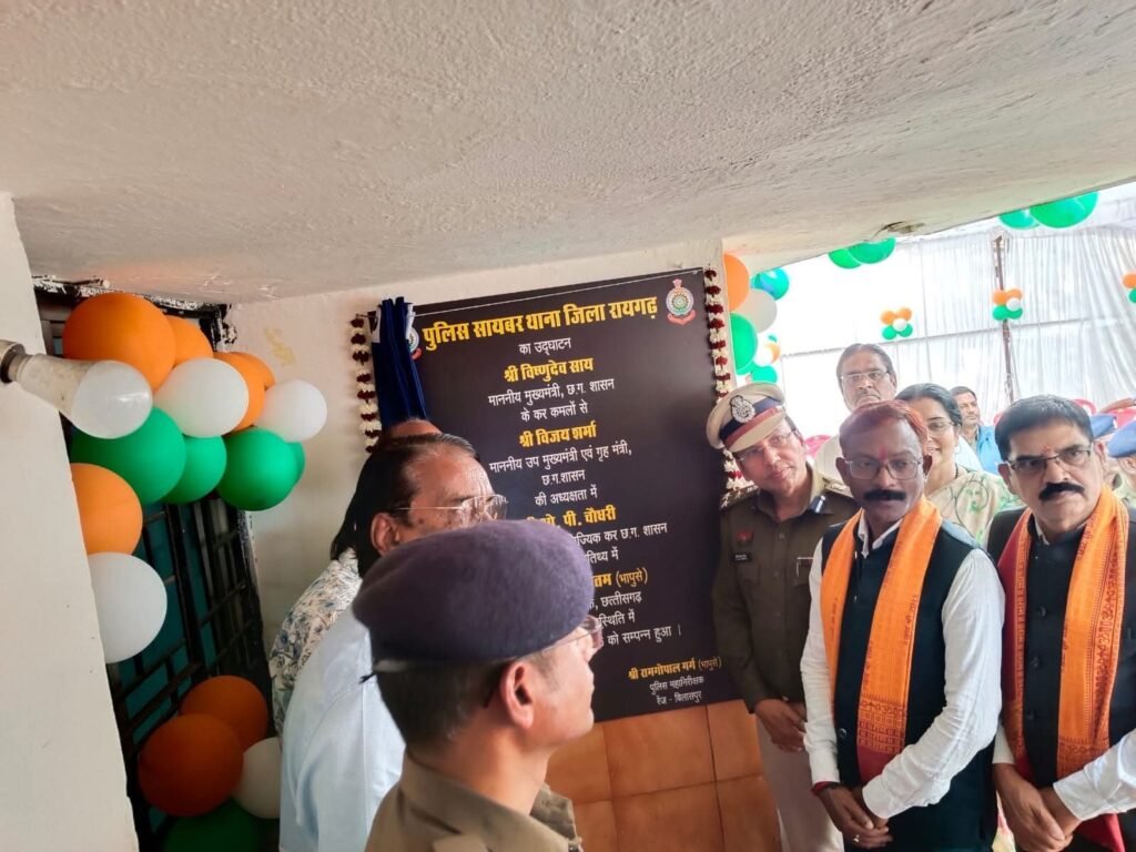 रायगढ़, 28 जनवरी 2026/ साइबर अपराधों पर प्रभावी नियंत्रण और आम नागरिकों को त्वरित न्याय दिलाने की दिशा में मुख्यमंत्री श्री विष्णु देव साय ने आज पुलिस मुख्यालय नया रायपुर से प्रदेश के 8 नवीन साइबर पुलिस थानों का वर्चुअल उद्घाटन किया, जिसमें रायगढ़ जिला भी शामिल है। पुलिस मुख्यालय नया रायपुर में आयोजित राज्य स्तरीय कार्यक्रम में उप मुख्यमंत्री श्री विजय शर्मा, मुख्य सचिव श्री विकास शील, एसीएस (होम) श्री मनोज पिंगुआ तथा पुलिस महानिदेषक श्री अरूण सिंह गौतम सहित अन्य वरिष्ठ अधिकारी उपस्थित रहे।